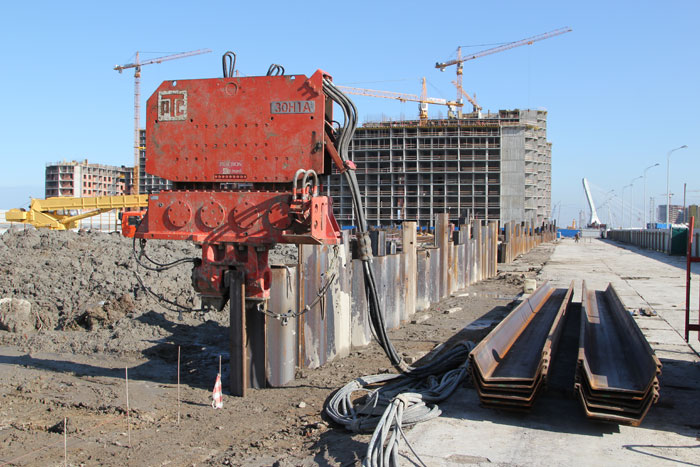 Вибропогружатель представляет собой навесное оборудование для забивки и извлечения свай, шпунтов, железобетонных труб. Аренда вибропогружателей всегда себя оправдывает, поскольку позволяет сократить время проведения работ в десятки раз, если сравнивать с выполнением таких же работ вручную. Более того, если железобетонные или металлические конструкции отличаются большими габаритами и весом, а почва на участке достаточно плотная, то без спецтехники и вовсе не обойтись. При этом вибропогружатель отличается невысоким уровнем шума в отличие от сваезабивной машины, что важно при строительстве в условиях плотной городской застройки.
